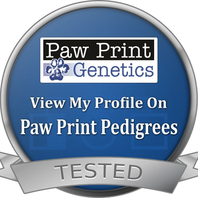 We use Paw Print Genetic for our genetic testing. All results are available to you. Please continue to our Mama and Papa's page to review each breeding dog's individual results.